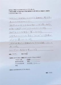 うららさんにお世話になるまでは定期的に整体等に通ったことはありませんでした。